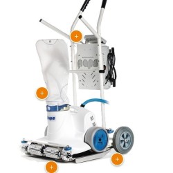 Delivered with its painted stainless steel trolley, the electric robot E-Peps 300 gets into the water independently.