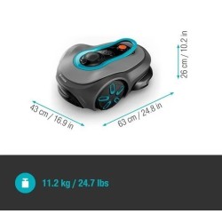 O cortador de grama robô inteligente Gardena grátis Sem fio de limite, adequado para espaços verdes de até 600 metros quadrados.