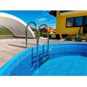 Die Garantie für hohe Qualität und lange Lebensdauer kommt von der tragenden Konstruktion von hochwertigen verzinkten Stahlblechwänden mit einer Kunststoff-Korrosionsschutzschicht. Die Wände sind mit einem hochwertigen und langlebigen UV-beständigen Liner und einer sehr effektvollen Mosaikdekoration verkleidet.