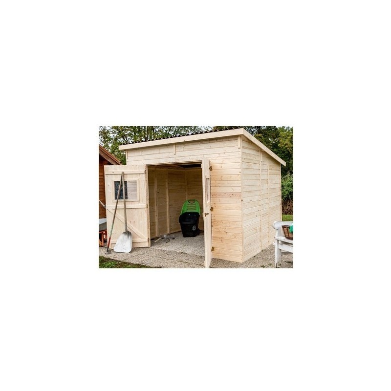 Dieses Flachdach-Gartenhäuschen besteht aus massiver unbehandelter Fichte, FSC-zertifiziert in Anerkennung des Wertes der Waldbewirtschaftung. Die Holzplatten mit einer Dicke von 16 mm mit einer Wellblechabdeckung zur Perfektionierung der Abdichtung.