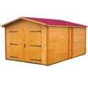 Solid wood garage Habrita 21m2 with planks 28mm and roof in Corrugated plate Habrita.
