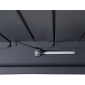 The roof of the arbour is made up of wide, flat adjustable aluminium slats. They open and close manually and simultaneously with a crank.