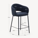 O Bancos altos Aina com assento em tecido chenille azul e pernas de aço azul Adequado para uso interno. Altura do assento 65 cm para bancada.